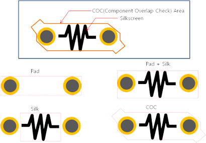 - Default: Use the component area basement used in the default setup in the Component Classification Setting dialog. If it is undefined in the Component Classification Setting dialog, the pad including area will be used as default.