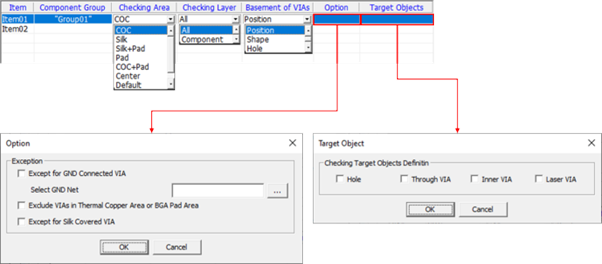 - Laser Via: If laser vias exist under specified components, PollEx DFM defines them as fails.