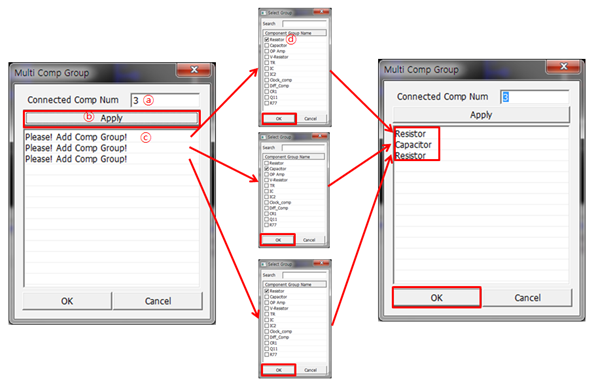 • Multi Num: Select a target component group. When an empty raw is double clicked, the Multi Comp Group setting window will be displayed.