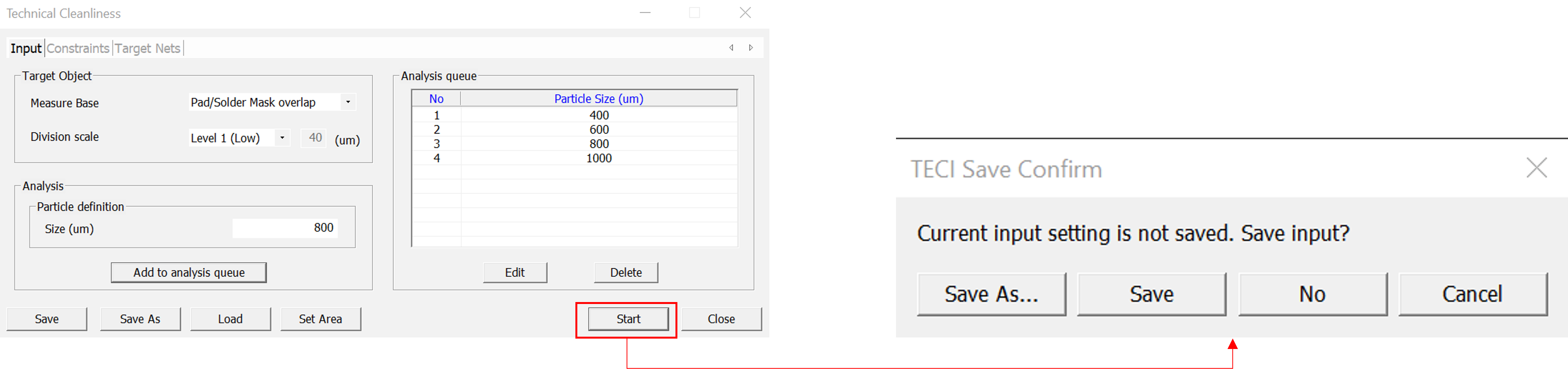 - Save as: Saves the current input parameters into a *.teci file with a different name.