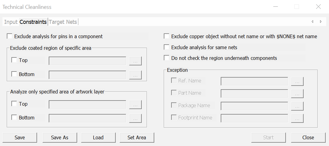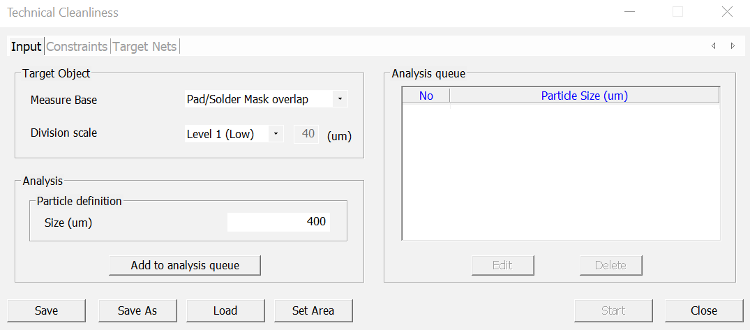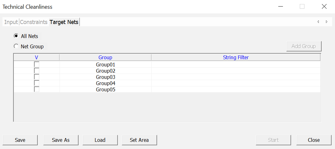 The PollEx TC main dialog window displays the Input, Constraints, and Target Nets tab.