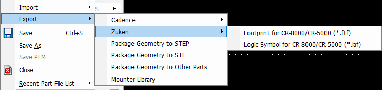 Figure 3. - Added a feature to export symbol and footprint libraries of Zuken CR-8000