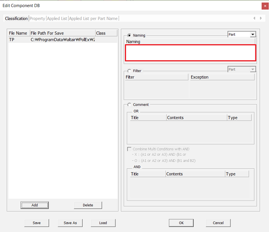 11. Click in Exception area and select the TP file in the C:\ProgramData\altair\PollEx\<version>\Examples\MFG\MountingDataExtractor\ComponentDB folder as ComponentDB1.