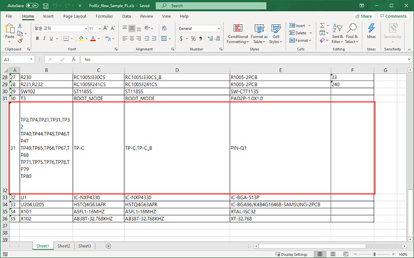 In the part list Excel file, TP-C is not needed for making component mounting list, so you need to exclude it.