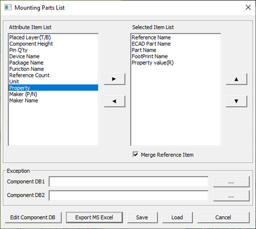 1. From the menu bar, click Manufacture > Mounting Data Extractor > Mounting Parts List.