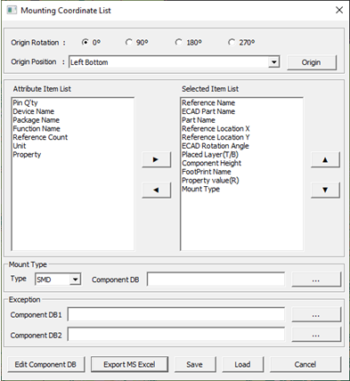 1. Click Manufacture > Mounting Data Extractor > Mounting Coordinate List.