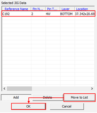 The selected net is displayed in the window.Note:must be activated to add the JIG data.