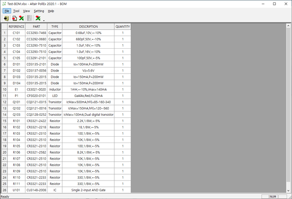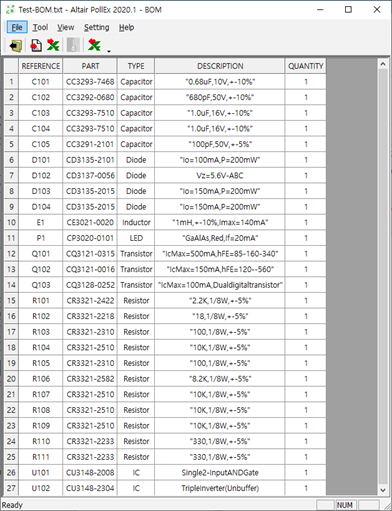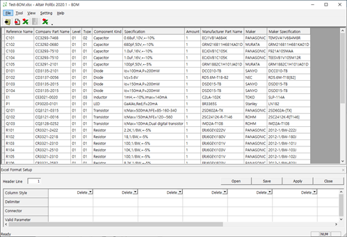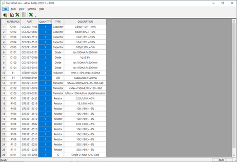 PollEx BOM is software that can import formatted text BOM or MS/Excel BOM and to use for searching components or check conjunction with PCB design file.