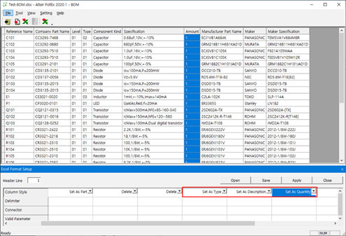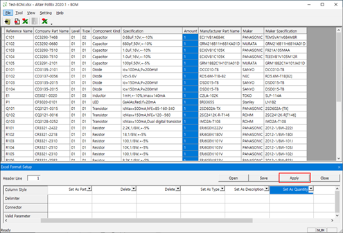 - Select the PollEx_BOM_ASCII_r1.0.txt file from C:\ProgramData\altair\PollEx\<version>Examples\Modeler\BOM.