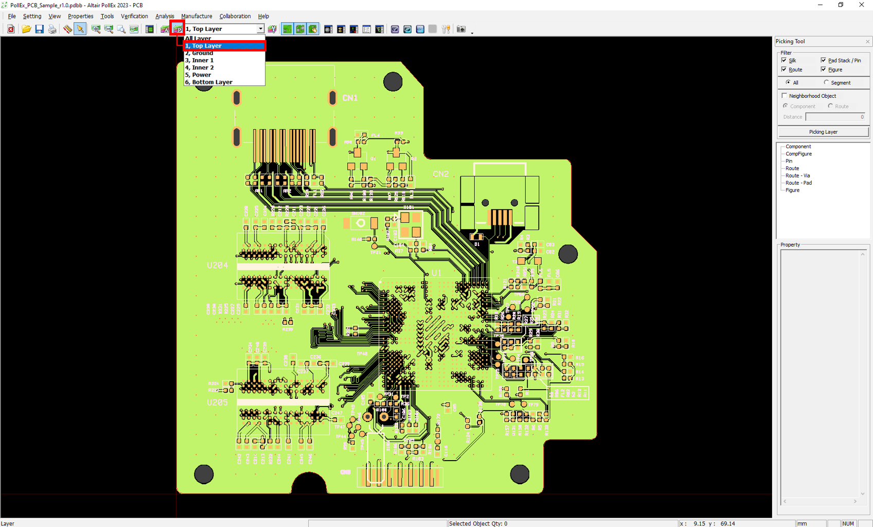 Figure 1. - From the menu bar, click File > Open and open the PollEx_PCB_Sample_r1.0.pdbb file from C:\ProgramData\altair\PollEx\<version>\Examples.