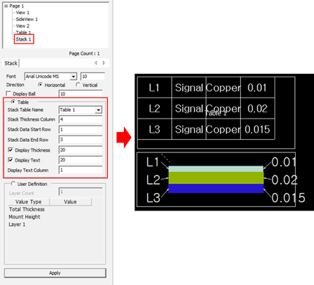 Figure 15. - Select a table from the list and enter the stack information in the table.