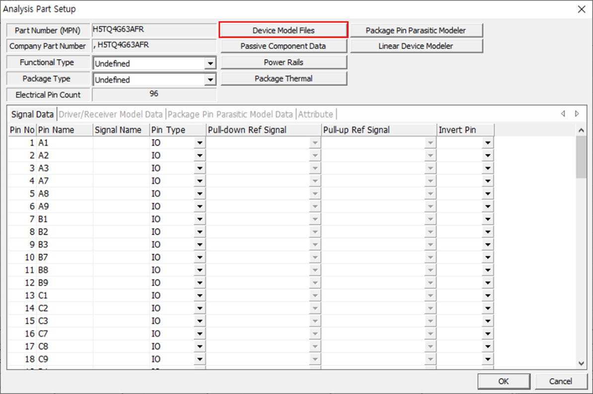 The Device Model Files dialog displays. The EBD, IBIS, and Package Parasitic are displayed.