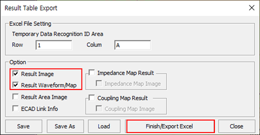 Figure 52.The Result Table Export dialog opens. - Enable the Result Image checkbox.