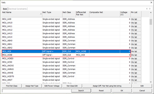 - Select the DDR_CLK net group as a target net group and click OK.