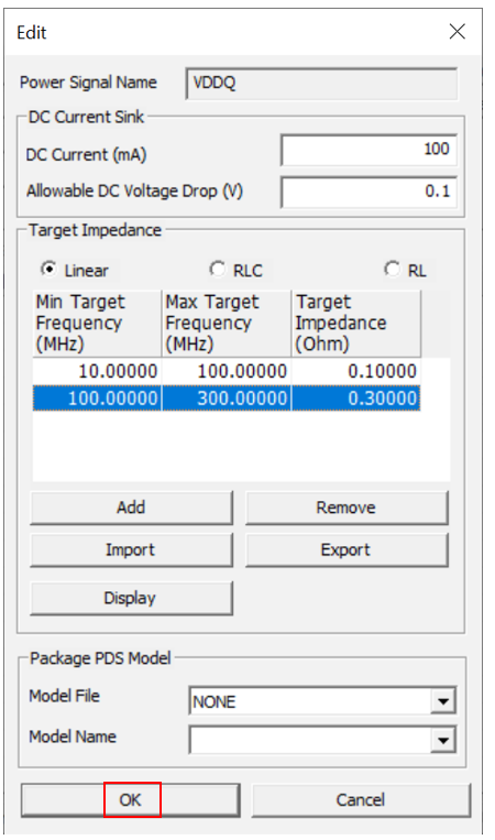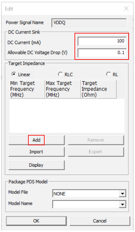 Click Add to setup Target Impedance.