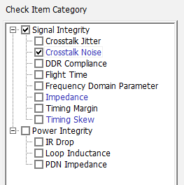 - Enable the Crosstalk Noise checkbox in the Check Item Category list.