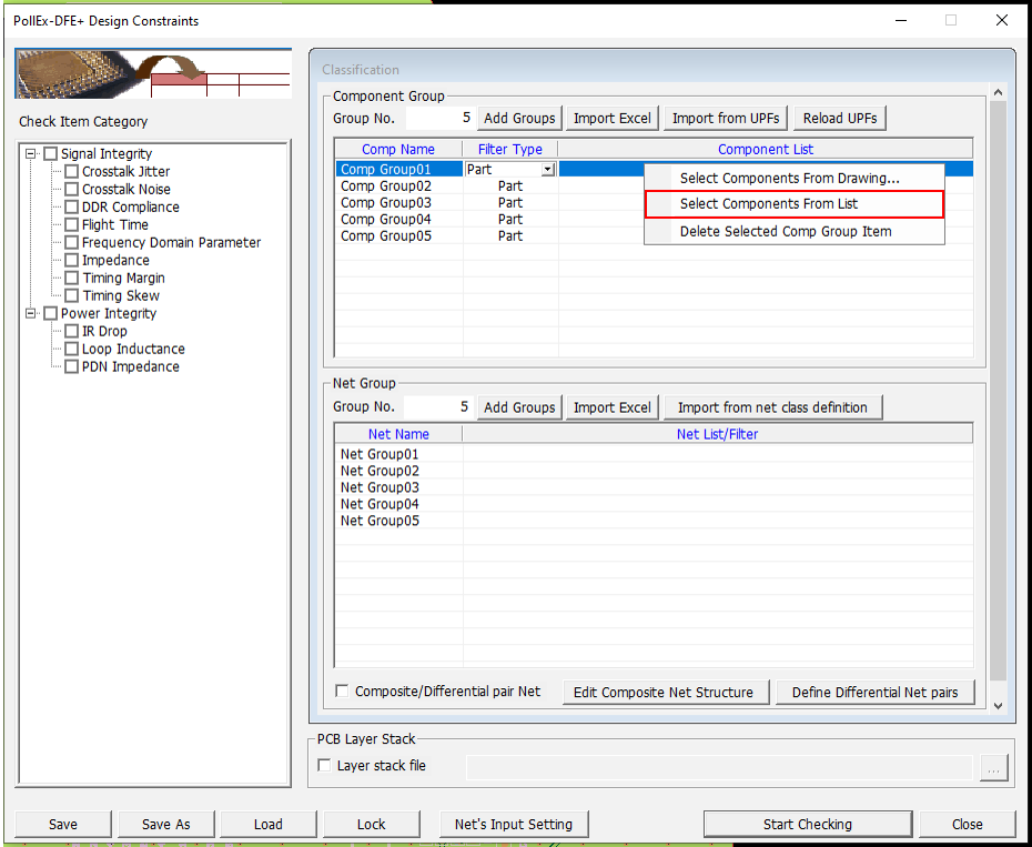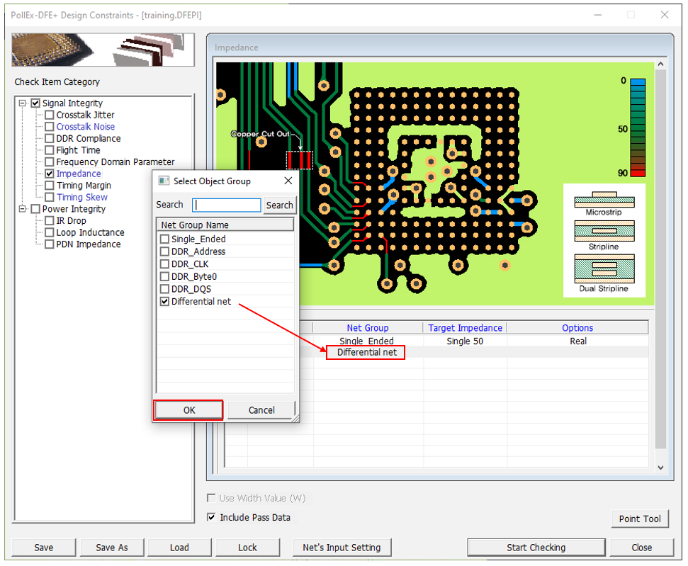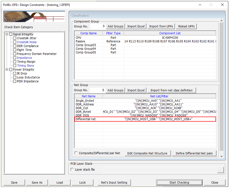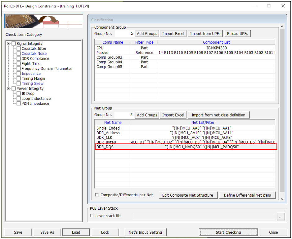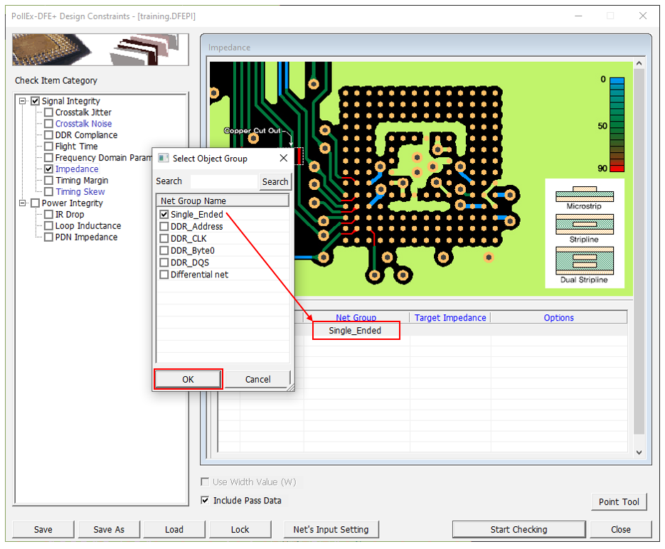 - Disable the Impedance and Timing Skew checkboxes in the Check Item Category section.