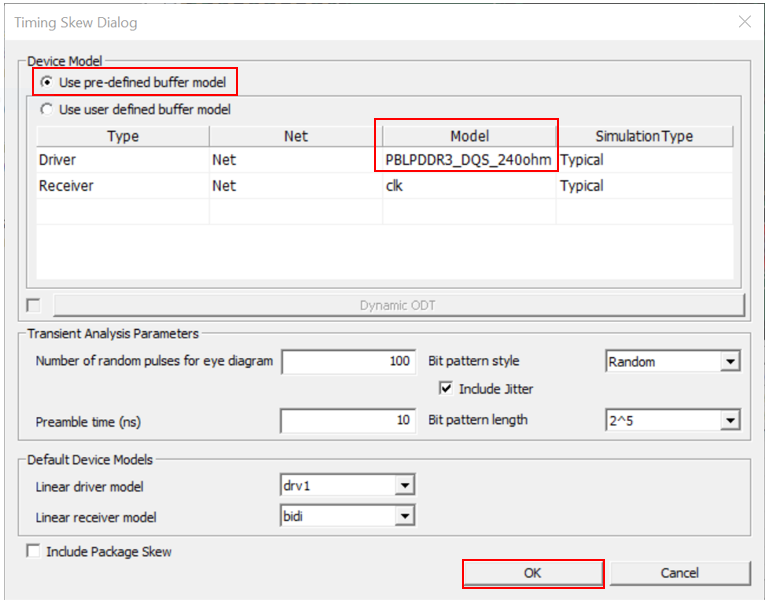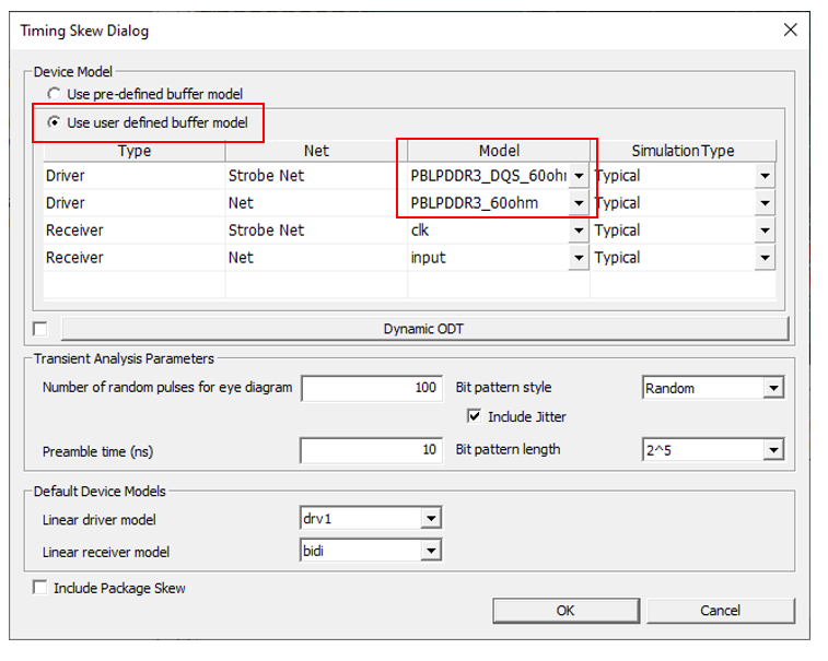 If you check the Use pre-defined buffer model, default Driver and Receiver models from UPE will be used.
