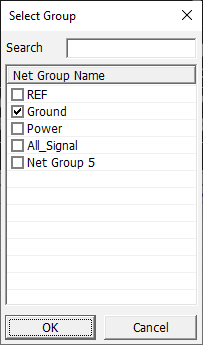 The Select Group dialog opens. You can assign component group that will be considered as open state during searching signal net.