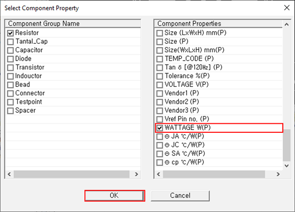 Figure 81. - Enable the Resistor and WATTAGE W(P) checkboxes and click OK.