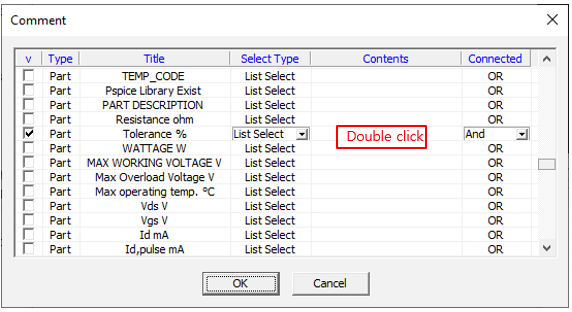 In the Component Property Filter dialog, the new PART_CLASS property is added in the OR section. Tolerance % is added in the AND section of the Component Property Filter dialog.