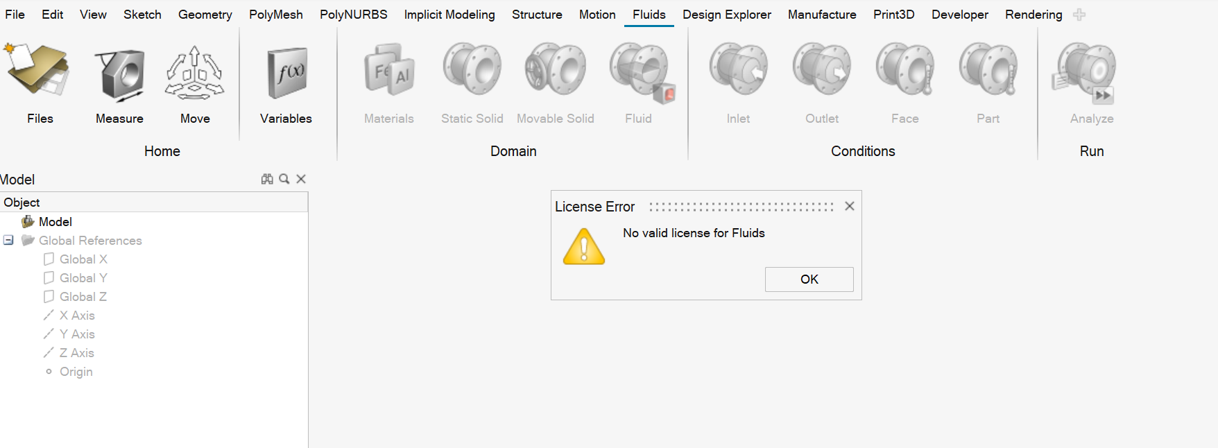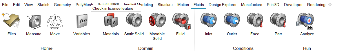 Figure 1. Example: Checking in the PolyMesh tab. In this example, we selected the Fluids tab to exit from the PolyMesh