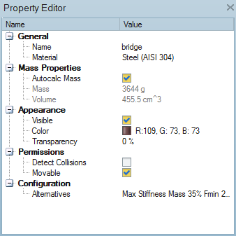 - Properties such as a name, material, and color can be assigned to various objects including parts, loads, shape controls, or an entire model. The properties assigned to an object vary based on the type of object selected; for example, materials can be assigned to parts, but not to loads or supports.