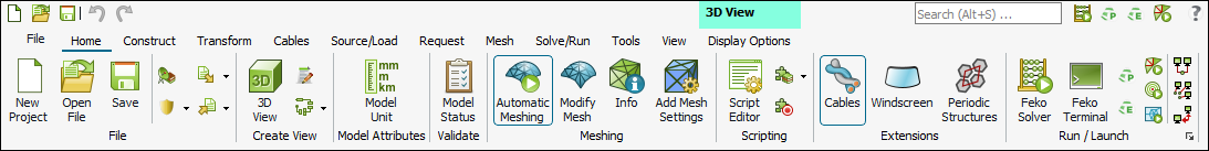 A CADFEKO.cfm file can be imported into EDITFEKO to make use of more advanced features available in EDITFEKO and to directly edit the .pre file for more flexible solution configurations.
