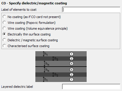 Figure 2. The CO - Specify dielectric/magnetic coating dialog, set to Electrically thin surface coating.