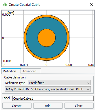 Feko has an internal coaxial cable database that contains more than 20 popular coaxial cable types from industry.
