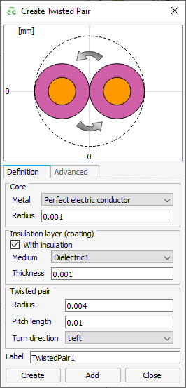 - Under Twisted pair, in the Radius field, enter the outer radius of the twisted pair cable.