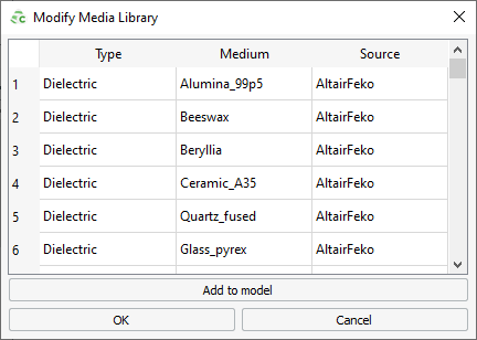 Define a medium with specific material properties, import a predefined medium from the media library or add a medium from your model to the media library.