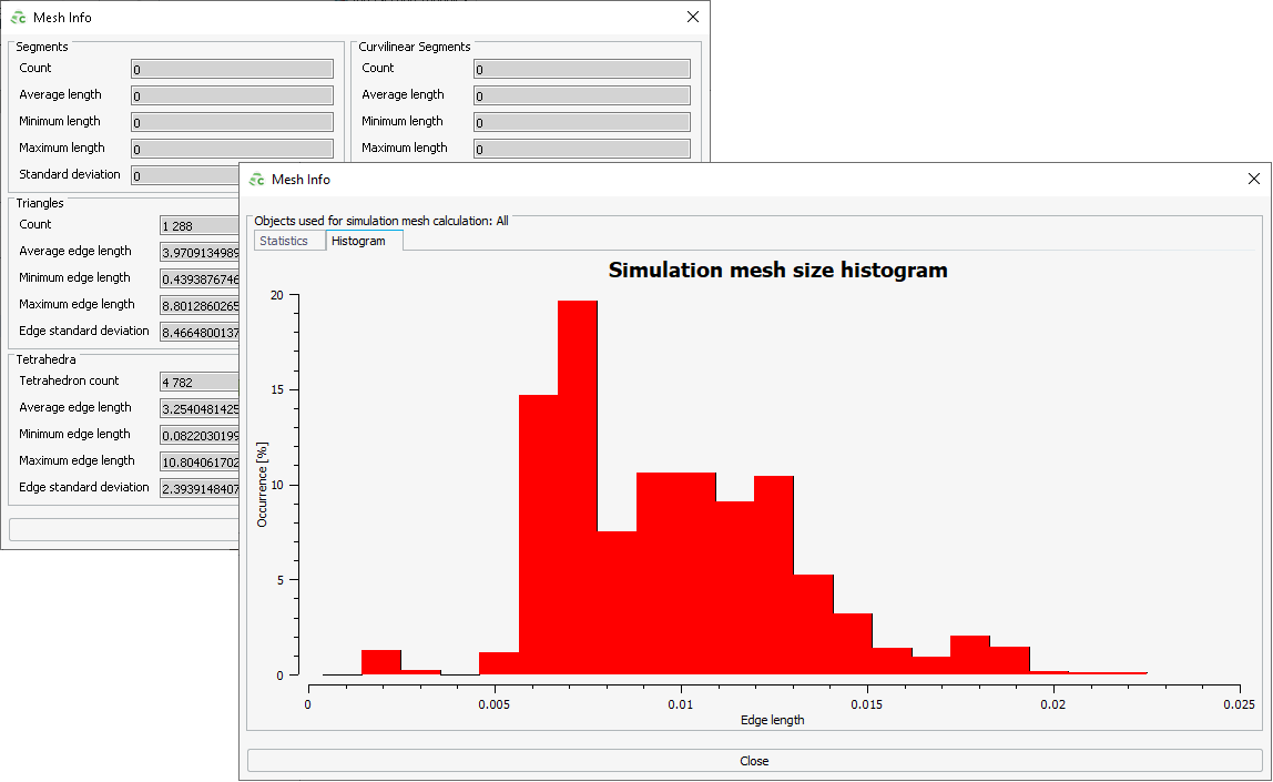 lengths distribution. The data gives an indication of the quality of the mesh and how