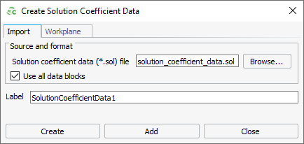 Import solution coefficient data (multi-frequency or single frequency) from a .sol file to create a solution coefficient data definition. Use the solution coefficient data definition when defining a solution coefficient source.