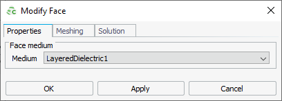 Apply a layered anisotropic dielectric to a face bordering a free space or dielectric region.