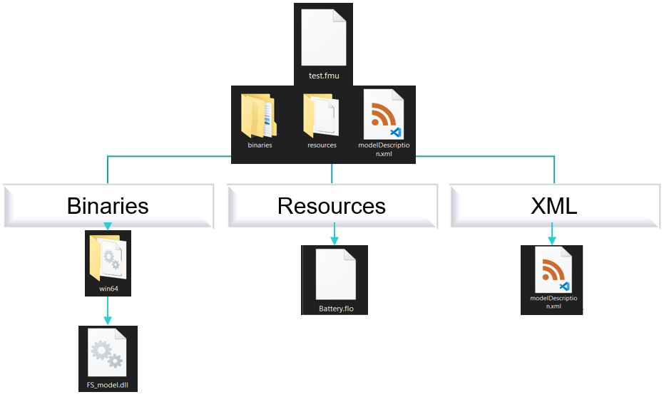 - If the exported FMU must be extracted and modified, you must zip it manually. The following specification for zipping must be followed: