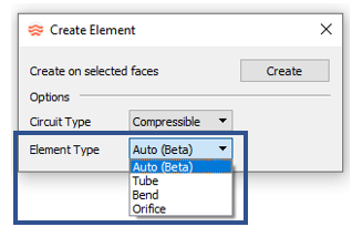 function to read geometry inYou can create an element directly from the geometry if Flow Simulator can recognize the surface geometry topology. Flow Simulator can recognize cylindrically shaped surfaces that are either full (360°) or partial (for example, 180°) circles. The automatic element creation is most useful for piping networks that use tube and bend elements.