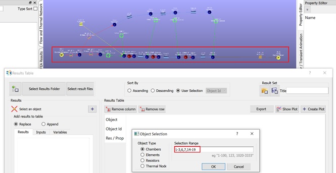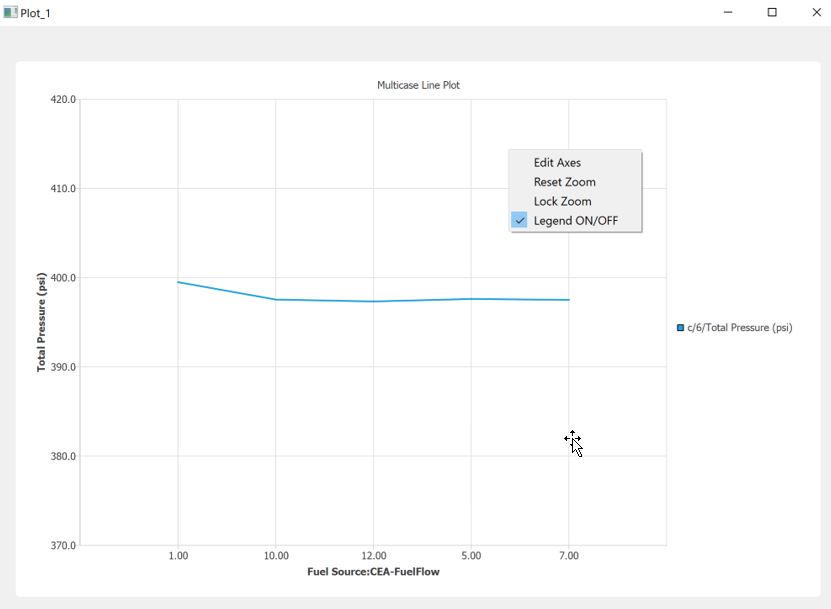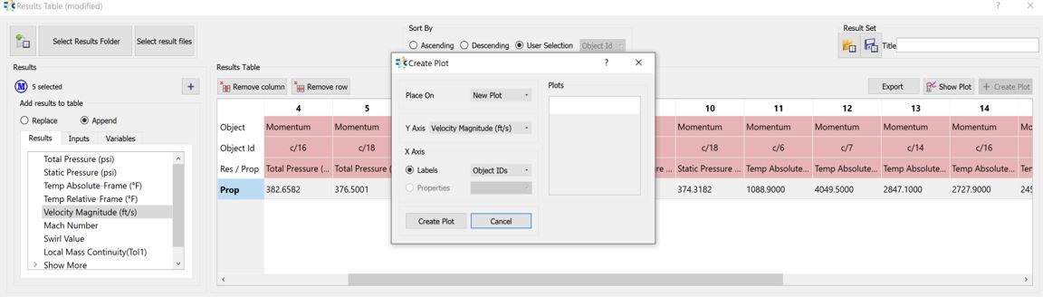 After a steady state analysis, users can plot the results of selected objects. After listing desired Results/Properties in the Results Table, users should select the Prop row and either through Create Plot or by right clicking and selecting Create Plot, the plot window will be opened.