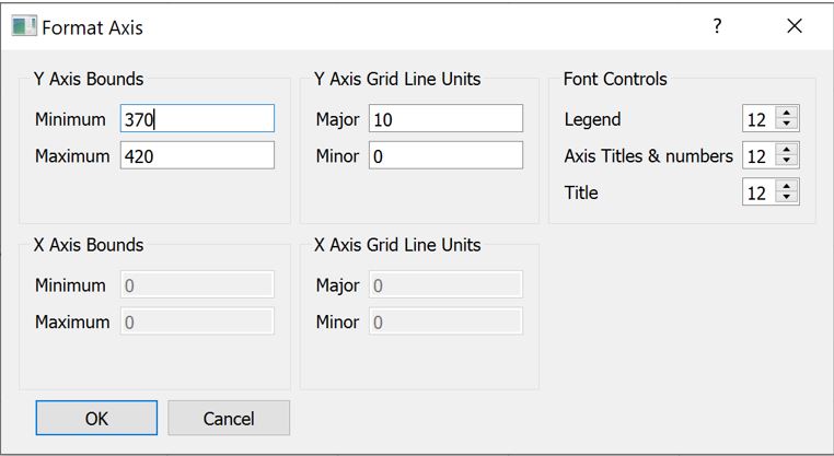 - X Axis Bounds: Allows users to change the bounds of the X-Axis, however enabled only for Transient Plot Types, to change the bounds of the time series.