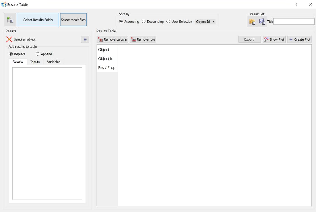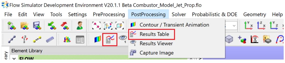 Results Table feature enables users to list the results of all objects’ properties after simulations. Users can open Results Table window through PostProcessing tab or directly from icon, as shown in the below figure.