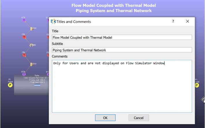 This option enables user to add title, subtitle and comments to their models. Title and Subtitle can be shown/hidden on the Flow Simulator window from Display Options. However, comments are only for users’ reference and are not displayed.