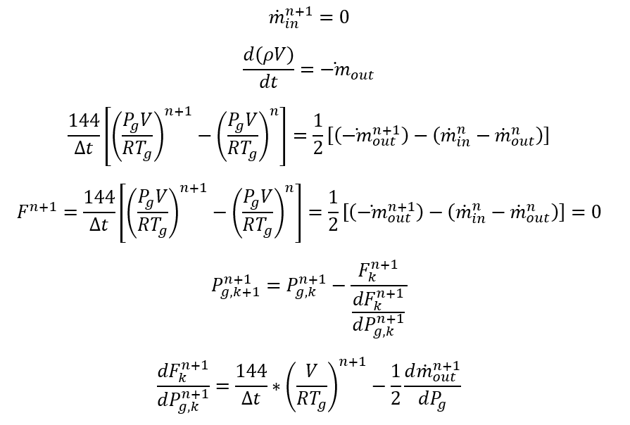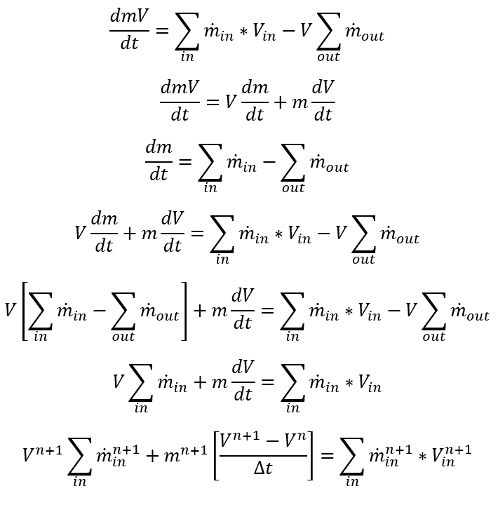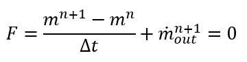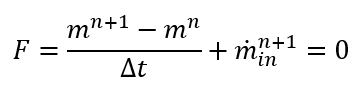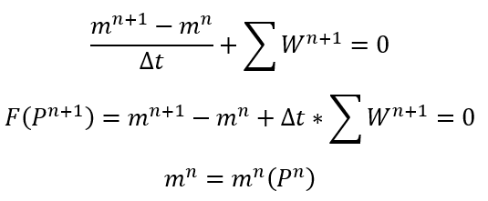 For each time step and inner iteration, we should calculate mass. Since we have a single equation for 2 unknowns, we will assume the previous iteration’s flow rate while calculating the remaining mass