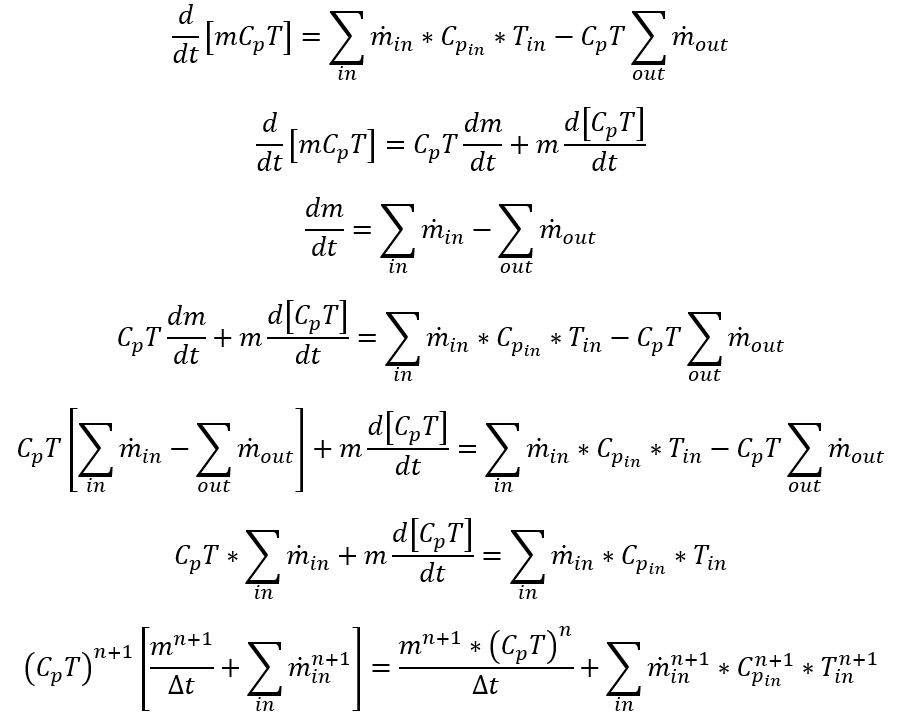 This section contains a governing equation of how mass, momentum & Energy conservation for all accumulator subtypes. Implicit Time Stepping solution is used to solve conservation equation as explained below.
