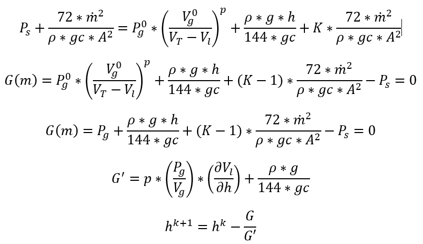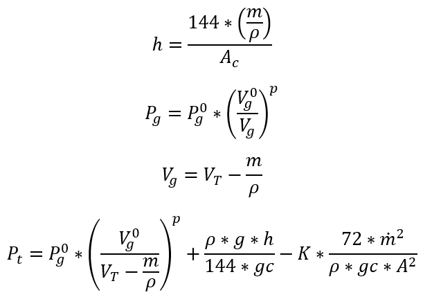 Now that we have defined the main residual equation, we will look at the calculation of remaining mass inside the volume. Since it will be mainly a function of h, or fluid height, the resulting equation will be in terms of h: