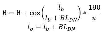 If the element is rotating or directly connected to one or more rotating elements, the reference direction is defined as parallel to the engine centerline and the angle is the projected angle in the tangential direction. Otherwise, the reference direction is arbitrary but assumed to be the same as the reference direction for all other elements attached to the upstream chamber.