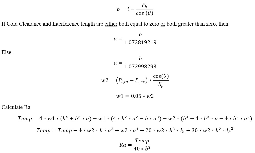 Clearance calculations – Axial (hf)