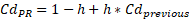 The K is converted into a Cd using Cd=1/sqrt(1+K) to get an adjustment to the previous Cd.