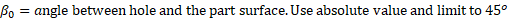 The Weisbach adjustment for an angled hole is valid when the upstream velocity is 0, in other words, a plenum chamber is upstream of the Cdcomp element. It is based on the following equation from Weisbach, but can also be found in Ref 9.
