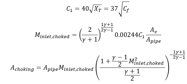 Before calculating subsonic flow rate however, we first need to decide in flow is in the choked regime. For valves, choking happens more easily than ideal flow channels, and this is where the choking correction factor and the semi-empirical choking area formula come into use.