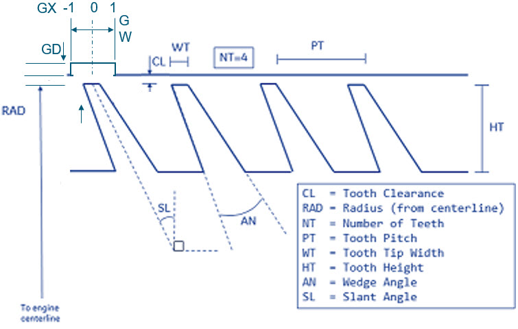The figure below shows the geometric inputs. The seal clearance is the besides the geometric inputs the user needs to enter honeycomb information